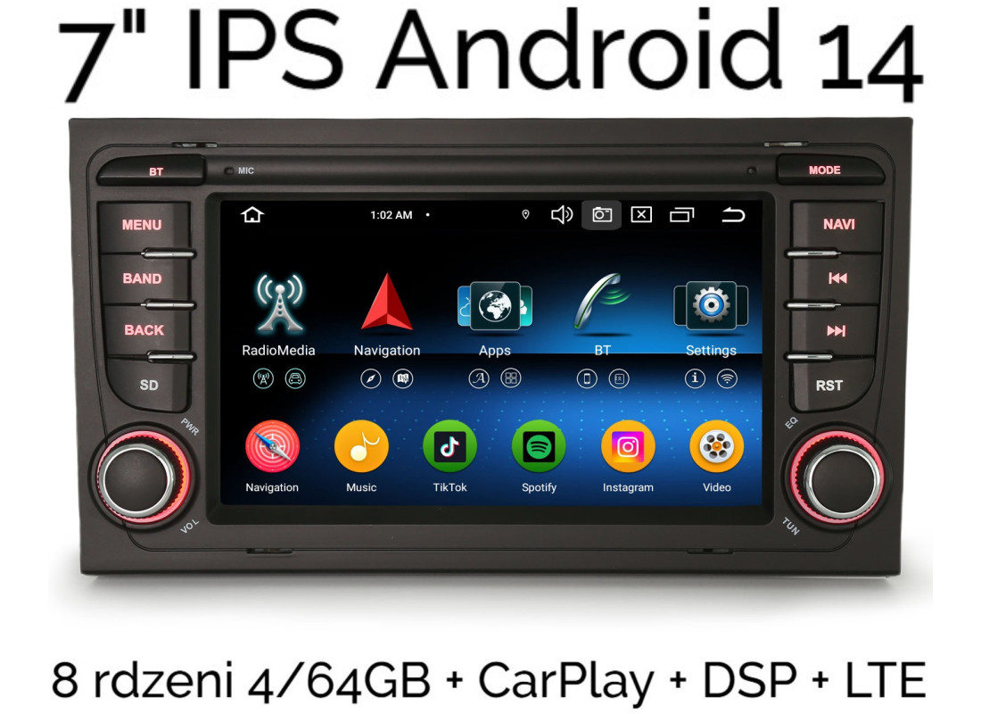7" NAWIGACJA RADIO 2DIN ANDROID 14 AUDI A4 B6 B7 SEAT EXEO 4/64 GB DSP CARPLAY LTE