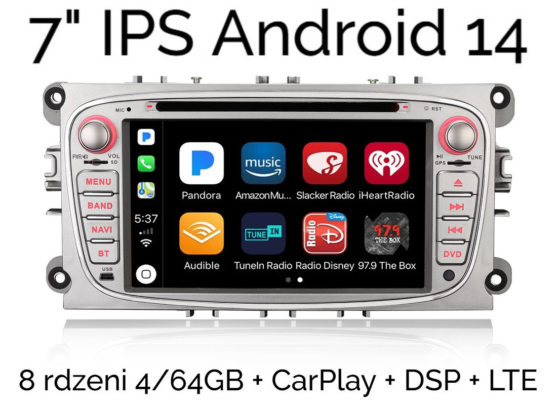 7" RADIO 2DIN ANDROID 14 FORD FOCUS S-MAX MONDEO 4/64 GB CARPLAY DSP LTE SILVER