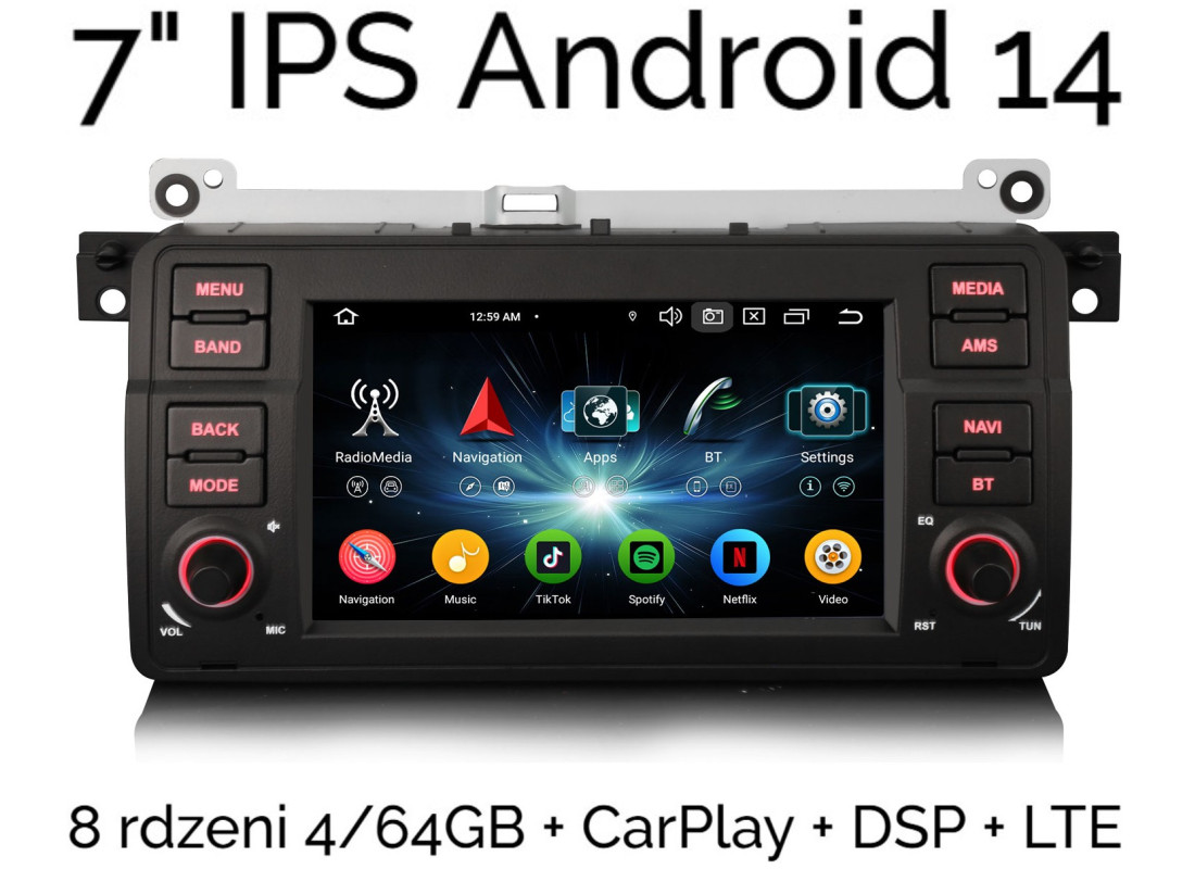 7" NAWIGACJA RADIO 2DIN ANDROID 14 BMW serii 3 E46 ROVER 75 4/64 GB DSP CARPLAY LTE
