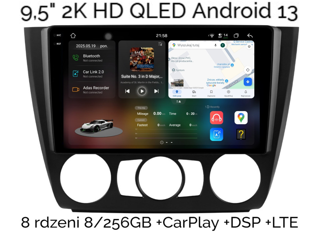 9,5" 2K HD QLED RADIO 2DIN NAWIGACJA BMW SERIA 1 E81 E82 E87 E88 ANDROID 13 8/256 GB DSP DTS CARPLAY LTE