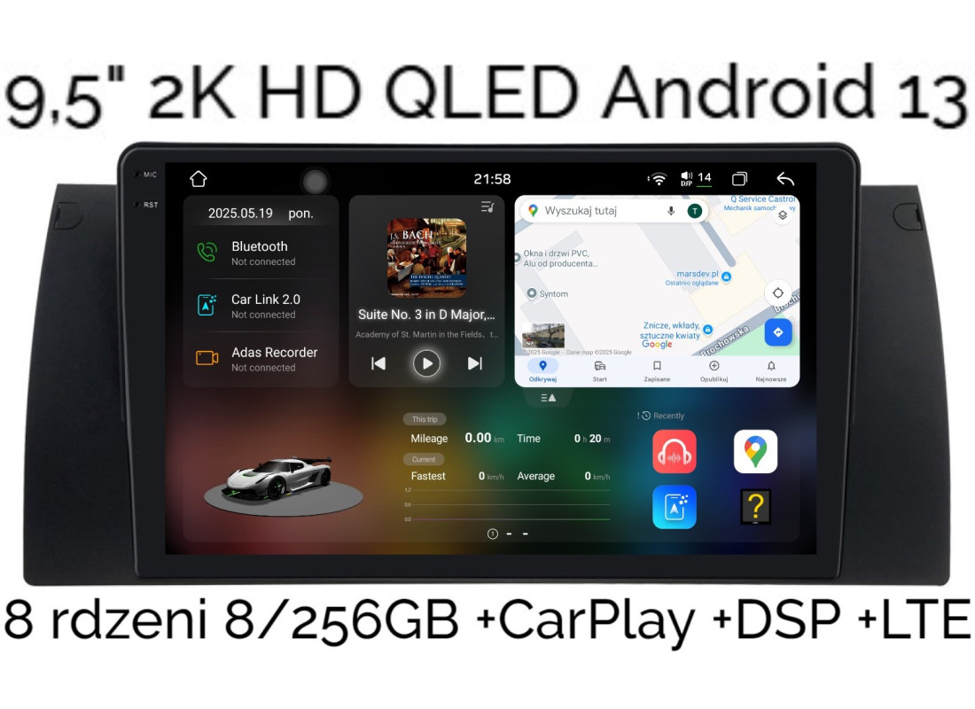 9,5" 2K HD QLED RADIO 2DIN NAWIGACJA BMW X5 E53 ANDROID 13 8/256 GB DSP DTS CARPLAY LTE