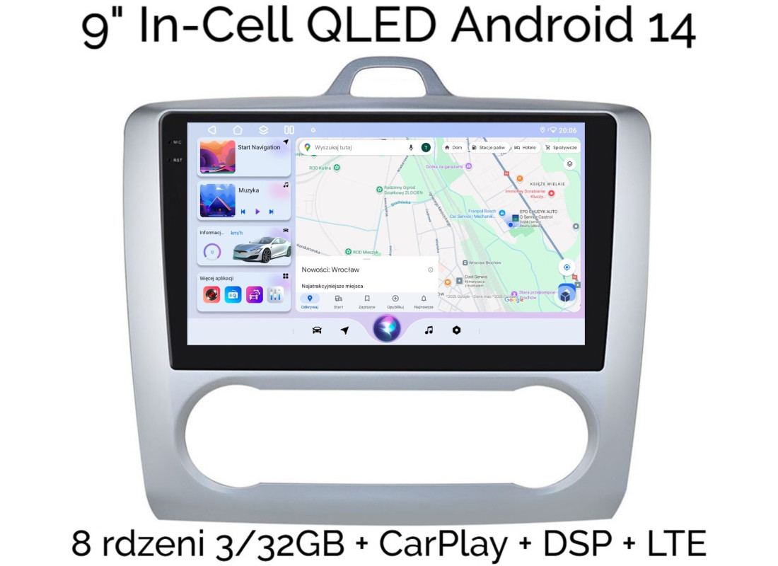 RADIO NAWIGACJA FORD FOCUS MK2 ANDROID 14 3/32GB DSP CARPLAY LTE SREBENE
