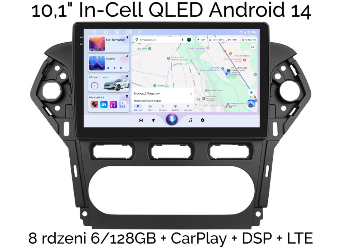 10.1" IN-CELL QLED RADIO 2DIN ANDROID 14 FORD MONDEO MK4 6/128GB LTE DSP CARPLAY