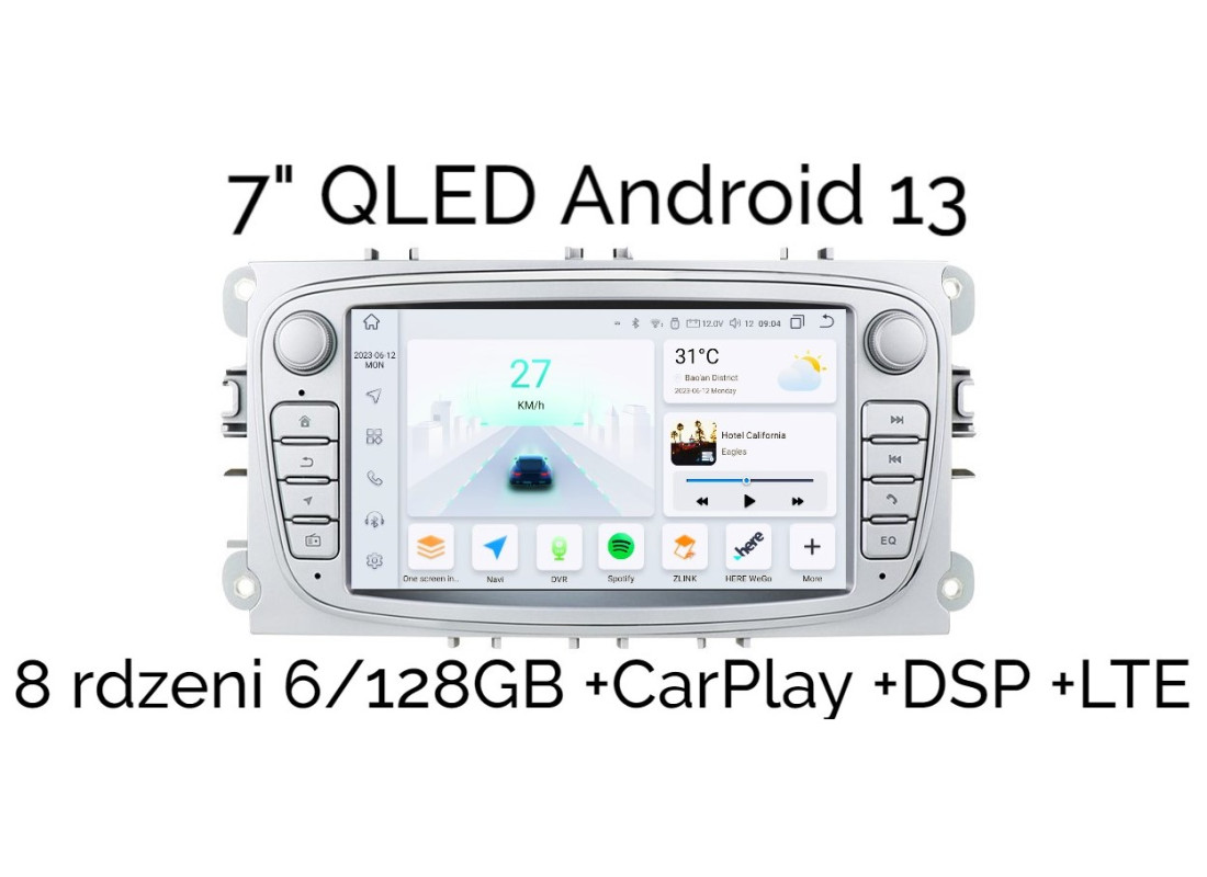 7" QLED RADIO 2DIN ANDROID 13 FORD MONDEO S-MAX GALAXY 6/128GB DSP CARPLAY LTE