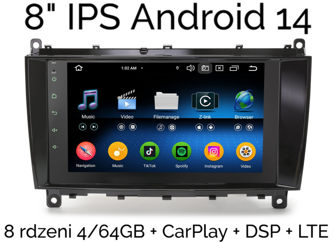 8" RADIO 2DIN NAWIGACJA ANDROID 14 MERCEDES-BENZ C W203 CLK W209 G W463 4/64 GB CARPLAY DSP LTE