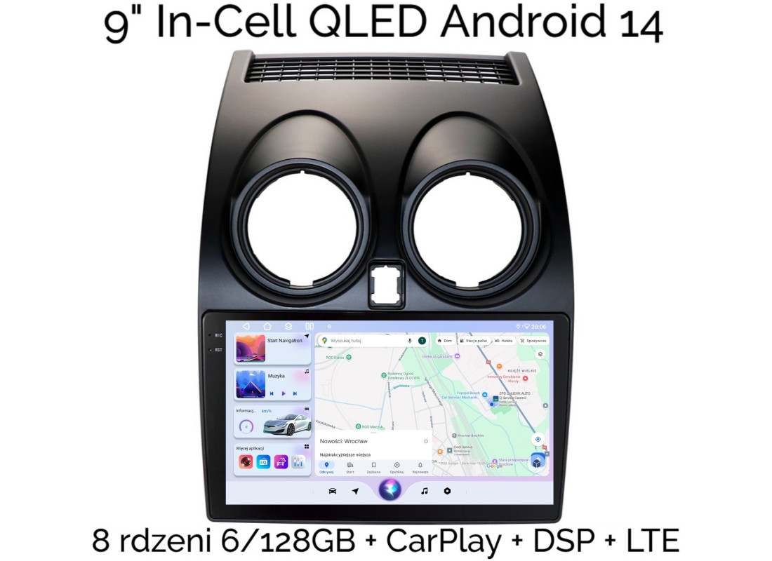 9" IN-CELL QLED RADIO 2DIN NAWIGACJA NISSAN QASHQAI ANDROID 14 6/128 GB DSP CARPLAY LTE
