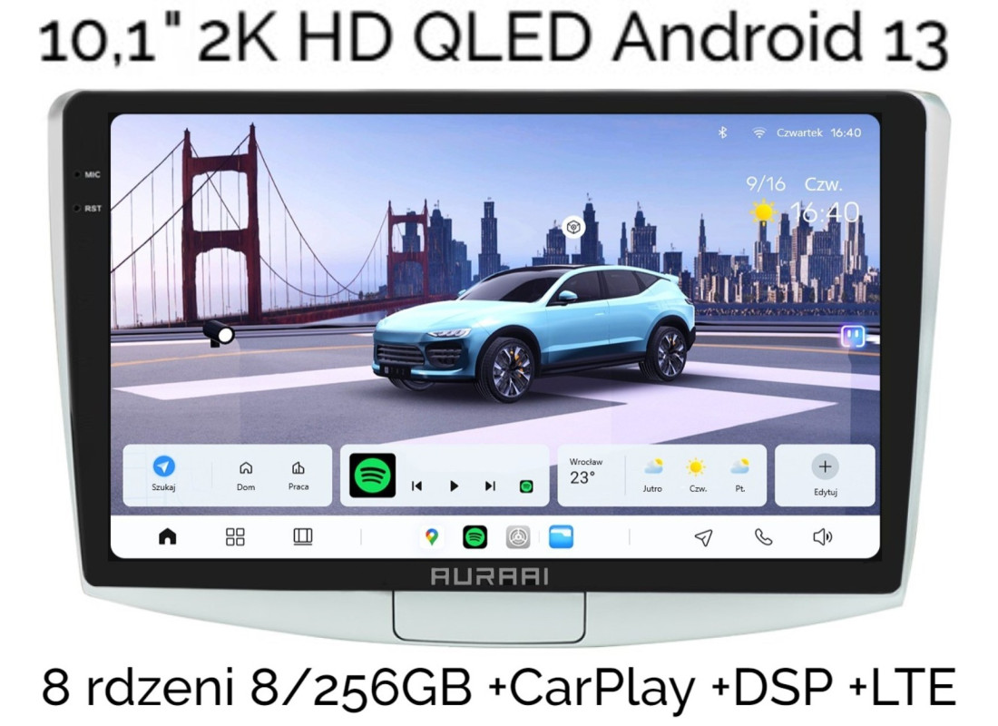 10,1" AURA AI QLED RADIO NAWIGACJA ANDROID 13 VW PASSAT B6 B7 CC DSP CARPLAY 8/256GB DSP LTE