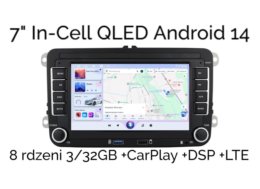 7" QLED RADIO 2DIN ANDROID 14 VW SEAT SKODA 3/32GB DSP CARPLAY LTE
