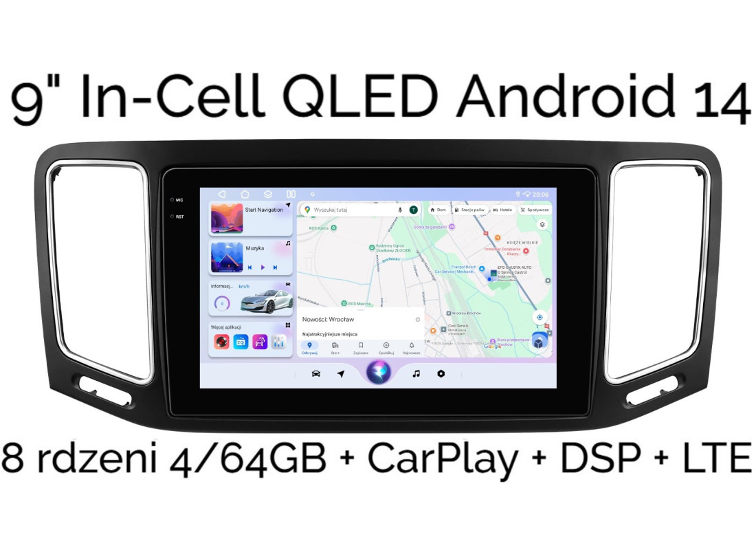 9" IN-CELL QLED RADIO 2DIN NAWIGACJA VOLKSWAGEN SHARAN II SEAT ALHAMBRA II ANDROID 14 4/64GB DSP CARPLAY LTE