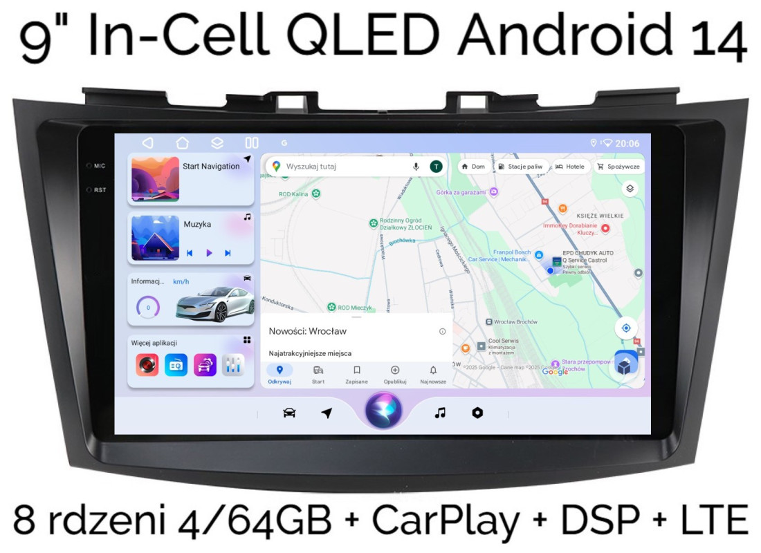 9" IN-CELL RADIO NAWIGACJA ANDROID 14 SUZUKI SWIFT V 4/64GB DSP CARPLAY LTE